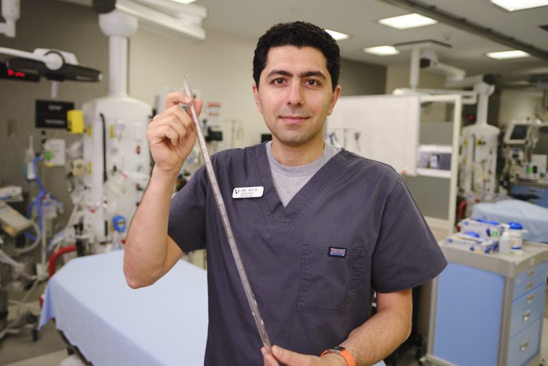 Through AIM, Dr. Abdalvand is working on a device to improve the care of patients with collapsed lungs or fluid buildup in the chest cavity. His chest tube stabilizer would simplify the stabilization of chest tubes.