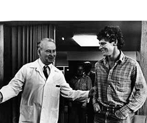 Terry Fox with Dr. Ladislav Antonik, medical director, Royal Columbian hospital in 1980. Fox entered the hospital for chemotherapy treatments.