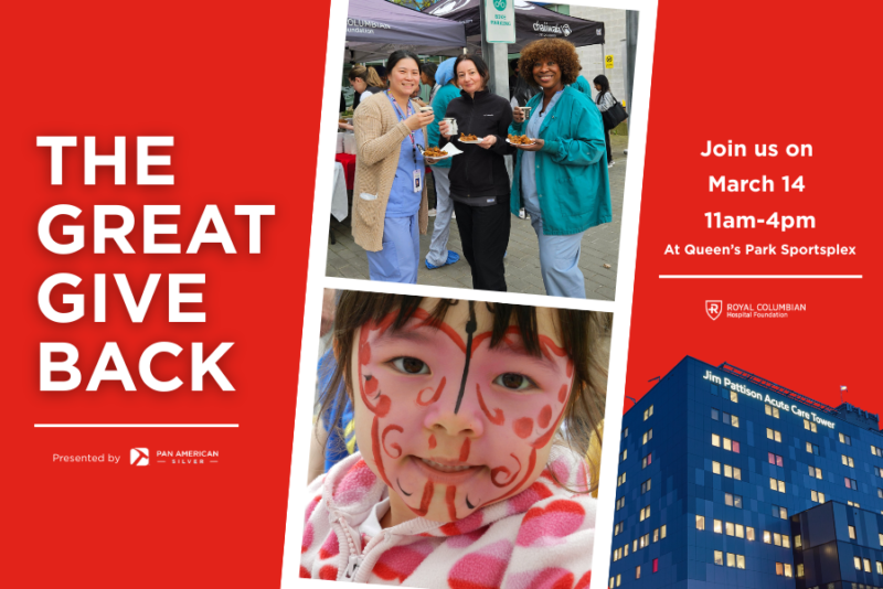 New Westminster, B.C. – {February 12, 2026} – Royal Columbian Hospital Foundation is inviting the community to come together for The Great Give Back, presented by Pan American Silver, a free, family-friendly celebration taking place Saturday, March 14, 2026, from 11 a.m. to 4 p.m. at Queen’s Park Sportsplex (51 3rd Avenue, New Westminster).